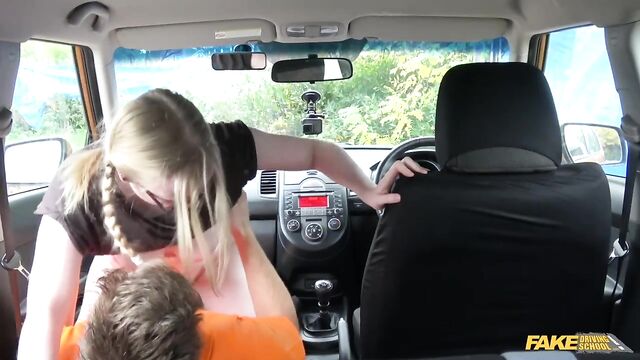 Description:Satine is my favourite student this round, because she just can't stop giggling! But today's lesson was different. When I told her she needed ten extra lessons, there wasn't a giggle to be heard. I understand that students on loans are low on cash, so I decided to offer the teacher's pet a deal: in exchange for a quick blowjob, I would offer her five free lessons, and guarantee she'd pass her driving test. I now know that Satine had a crush on me--she wasted no time in unzipping my pants and wrapping her lips around my big fat cock. I took out her perky titties to play with, then felt how wet she was, and figured I'd give her a little treat, too. We fucked in the backseat and front seat, and steamed up all of the windows, and both of our pairs of glasses! Afterwards we had some time left, so we went to work on parallel parking, but I kept her wet panties in my pocket, to remember the moment.