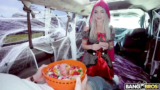 Description:It's Halloween Bitches! Britt Blair is a soft spoken spooky girl. Peter Green is a wolf man who likes to fuck. The bus pulls up on her and has her jump in to try on some costumes. That was worthless because she ends up taking them off. She found dick in the candy bowl and sucked it like a lolly. Peter made her howl like a wolf as he fucked her and obviously came on her face. They ditched her the little red riding hoe on the side of the road when they were done.