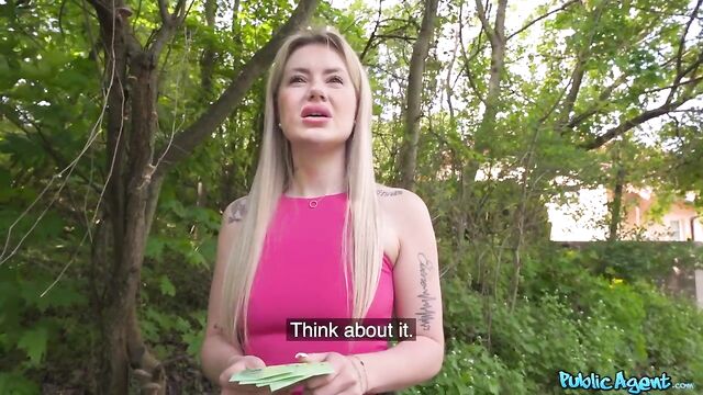Description:I was taking a stroll through the park when I came across sexy French babe Georgia Koneva. She was happy to stop and chat, especially when I told her that I could get her a job modelling swimwear. I gave her some cash, and Georgia teasingly showed me her sexy curves, even flashing me her hairy pussy! After handing over a few more euros, the gorgeous blonde got on her knees and began sucking me off until my cock was rock-hard and ready to fuck. I spread her legs and fucked Georgia on the ground in missionary while she rubbed her clit, and then the tattooed nymph stuck out her arse so that I could bang her from behind in standing doggy! Next, Georgia rode me in cowgirl, giving me a nice view of her perky titties and hot, pierced body. When I was close to cumming, the all-natural babe jerked me off until I spunked on her tongue, and she made sure to clean up every last drop!